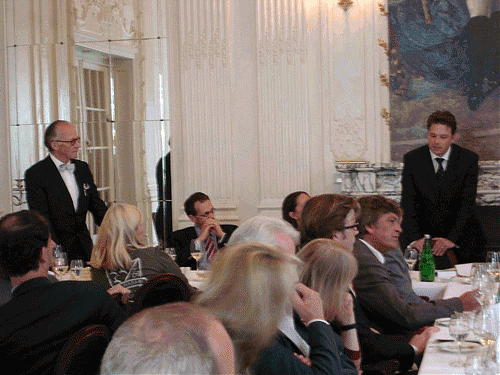Diskussion mit den Gästen, Mitgliedern vom Club Bel Etage, Jeannot Simmen (links)