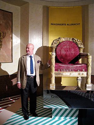 Der kurfürstliche Thron, ironisch erhöht auf einem Spiegel-Sockel
