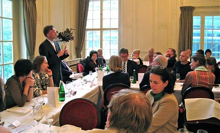 Ungewohntes Thema: Prof. Hafner (Theologische Fakultät, Universität Potsdam), referierte über Angeologie, aktuelle und historische Erkenntnisse über Engel. Der fulminante Vortrag begann mit einer Überraschung: Darf man neuesten Umfragen glauben schenken, ist der Glaube an die Existenz eines persönlichen Gottes, der sich um mein Schicksal kümmert, nur noch bei einer Minderheit der Deutschen verankert. Nicht so der Glaube an die Existenz eines Schutzengels, den eine knappe Mehrheit teilt. Schon der in Fragen der Religion nicht unbewanderte Heinrich Heine stellte einmal in einem Bonmot fest, dass ein gültiger Gottesbeweis bisher noch nicht gefunden sei, wohingegen es auch der modernsten Wissenschaft noch nicht gelang, die Existenz des Belzebub schlüssig zu beweisen.