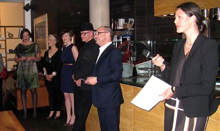 Die drei Jungkuratorinnen, der Leiter der Curatorial Studies, Prof. Olbricht und Julia Rust
