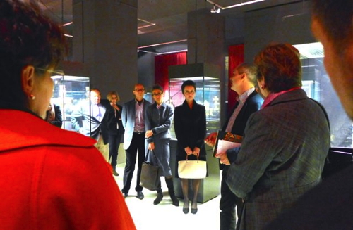 Souverän erläutert uns der Vizedirektor des Kunstgewerbemuseumes, Lothar Lambacher, die Vorgeschichte. Erklärt mit vielen Details die weitläufigen historischen Verquickungen dieses kostbaren Schatzes. Ausgestellt in der ’Schatzkammer’ vom Bodemuseum (Umbau Kunstgewerbemuseum am Kemperplatz), bildet dieser den Höhepunkt unter den vielen Kunstwerken. Lothar Lambacher erläutert uns auch an Einzelobjekten die kunsthandwerklichen Finessen … nach wunderbaren zwei Stunden hatten wir einen kleinen Teil der ca. fünfzig Objekte bewundert und verstanden.