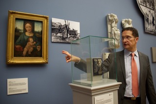 Eine Ausstellung, die keiner der Offiziellen befürwortete … eine traurige Ausstellung über die im Zweiten Weltkrieg zerstörten Kunstwerke. Dr. Chapuis, Leiter der Skulpturensammlung, vom Bode-Museum führt uns durch die von im konzipierte Ausstellung. Eine Ausstellung der Verluste und Zerstörungen. Davon berichten grosse S/W-Fotografien, sie hängen statt der verbrannten Werke an den Wänden. Die Glasnegative überleben das Original. Ausgestellt sind zugleich angebrannte und teilzerstörte Marmor-Werke, zeitgenössische Kopien …