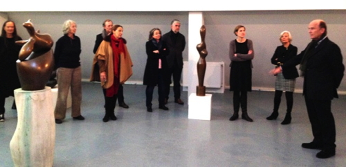 Arp-Stiftung: CBE-Gäste, Arp-Plastik, rechts: Frau Steinkamp, Frau Stadler-Euler und Herr Büning von der Arp-Stiftung Berlin e.V.