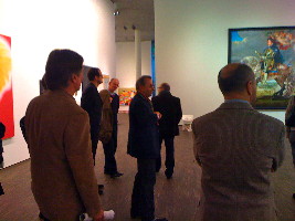 Blick in die grosse Halle, Diskussion beim Wein mit dem Sammler Thomas Olbricht (Aufnahmen: Jeannot Simmen)
