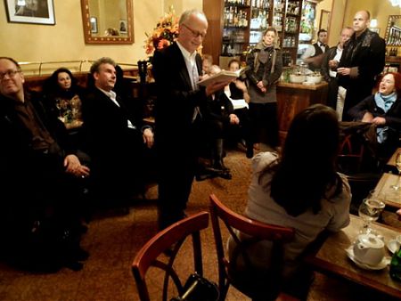 Jeannot Simmen liest anschliessend aus seinem Berlin-Heimat-Buch (www.Berlin-2010.eu) zwei, drei Passagen (5-Minuten-Lesung). Erinnert an das alte WestBerlin mit all den Irren und Sonderlingen; im zweiten Teil umreißt Simmen das Neue am neuen Gesamtberlin. Buchtitel: Vom Narrenhaus WestBerlin zur Kultur-Metropole Europas. Nachbericht vom Kunstkontakter:
