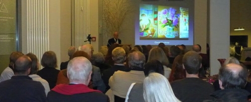 Prof. Parzinger veranschaulicht uns ein Panorama neuartiger Themen und multimedial-gestalteter Ausstellungs-Präsentationen. Viele Gäste ‘volles Haus’ im Kaisersaal, eine edle Gästeschar, interessiert an Berlins Kunst und Kultur, besonders am kommend Neuen.