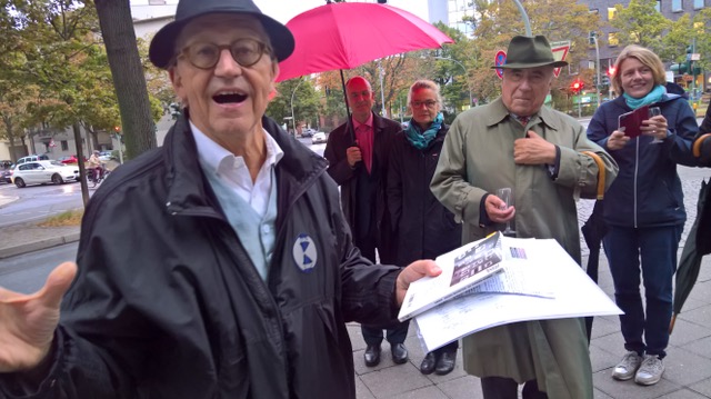 Wir stehen (trotz Wind, Regen und Kälte) vor einer modernen Säule, auch Litfaß-Säule nach seinem Erfinder, dem Drucker Ernst Litfaß. genannt. Keine tragende Säule, keine der Sieger. Sondern: Säule der Kommunikation im öffentlichen Raum.